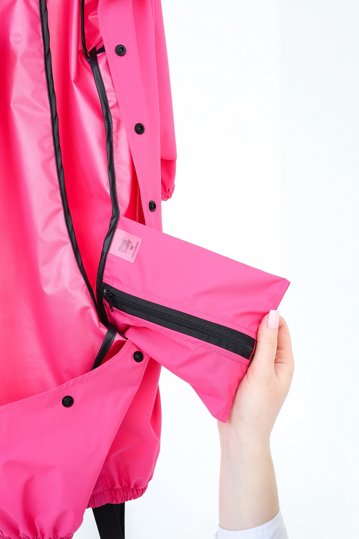 А еще всегда под рукой. Мы специально разработали вшитый чехол-сумочку, благодаря чему удобно носить дождевик с собой или сложить его влажным после использования.