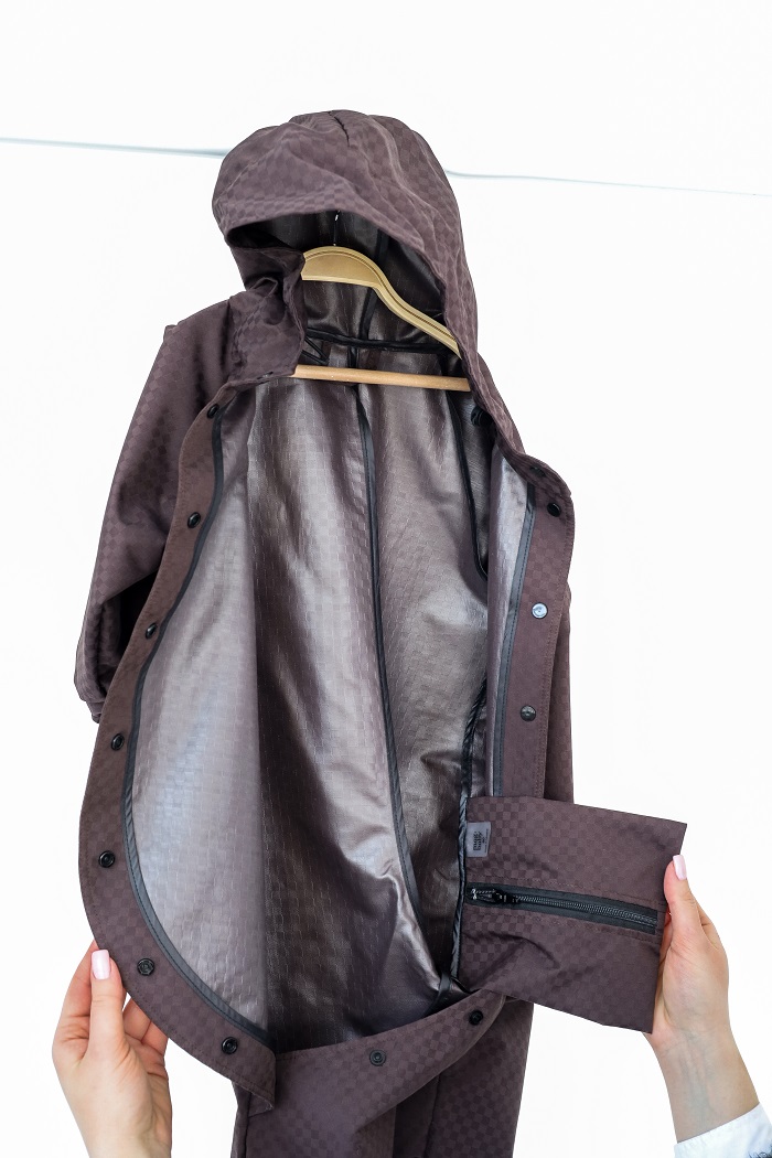А еще всегда под рукой. Мы специально разработали вшитый чехол-сумочку, благодаря чему удобно носить дождевик с собой или сложить его влажным после использования.