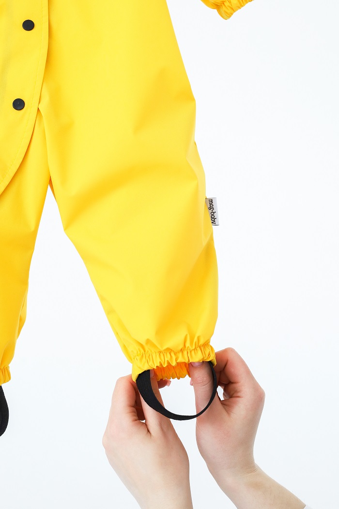 Материал: водоотталкивающая плащевая ткань на мембране. Застёгивается на кнопки. Имеет манжеты, плотно прилегающие и предотвращающие попадание влаги внутрь. А благодаря штрипкам надежно фиксируется на обуви и не дает попасть воде из луж в ботинки.