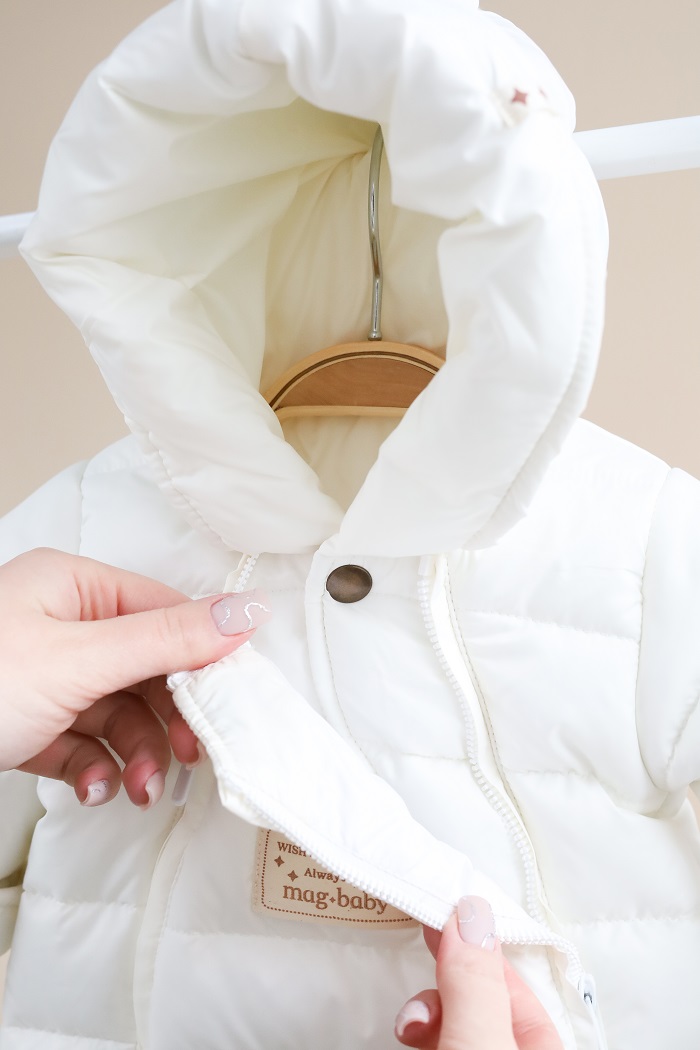• Дополнительный слой, закрывающий шею и грудь малыша, который застегивается на кнопку под молниями.