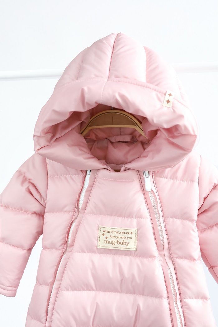 Пошит из прочного и практичного полиэстера, который легко чистить и хорошо сохраняет форму после стирки. Утеплен искусственным пухом по технологии циклического наполнения. Комбинезон хорошо согреет малыша, а пух не сбивается, потому что утеплитель простеган по швам.
