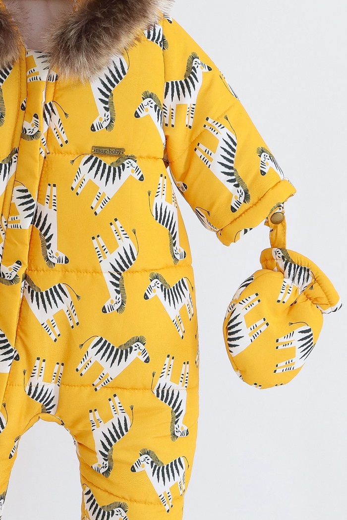 Комбинезон имеет очень удачный капюшон, который хорошо садится на шапку. Опушка в комбинезоне крепится на кнопках, которые спрятаны под планкой. Поэтому, если вы вдруг захотите ее снять, то комбинезон будет выглядеть не менее привлекательно. А еще мех искусственный, поэтому ни одно животное совсем не пострадало. Кстати, с опушкой маленькому носу всегда будет теплее, потому что мех защищает его от ветра.