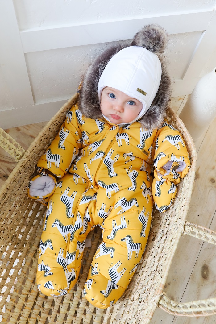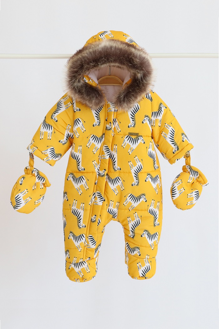 Комбинезон имеет очень удачный капюшон, который хорошо садится на шапку. Опушка в комбинезоне крепится на кнопках, которые спрятаны под планкой. Поэтому, если вы вдруг захотите ее снять, то комбинезон будет выглядеть не менее привлекательно. А еще мех искусственный, поэтому ни одно животное совсем не пострадало. Кстати, с опушкой маленькому носу всегда будет теплее, потому что мех защищает его от ветра.