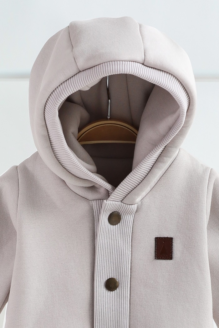 Пошит из трикотажа - трехнитки с начесом. В комплект можно приобрести пинетки.