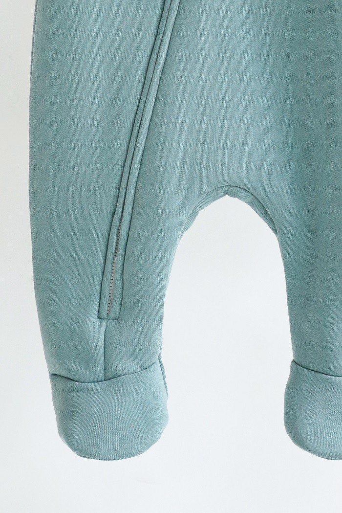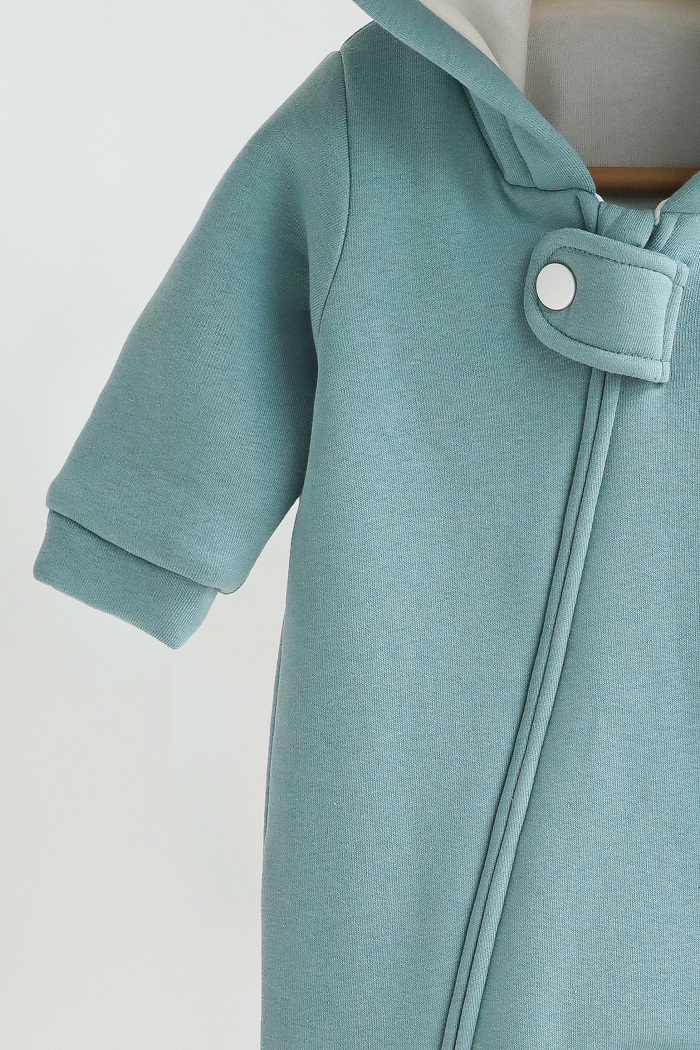 Комбинезон пошит из футера с начесом снаружи (на флисе), трикотажной хлопковой подкладки внутри и совсем без утеплителя. Именно такое сочетание делает комбинезон очень универсальным, и он идеально подходит для выписки в межсезонье. В прохладную погоду вы можете использовать его в комплекте с одеяльцем, а зимой вообще как поддев под зимний комбинезон. Весной же, наоборот. Когда с каждым днем будет становиться теплее, комбинезон без утепления – это именно то, что нужно.