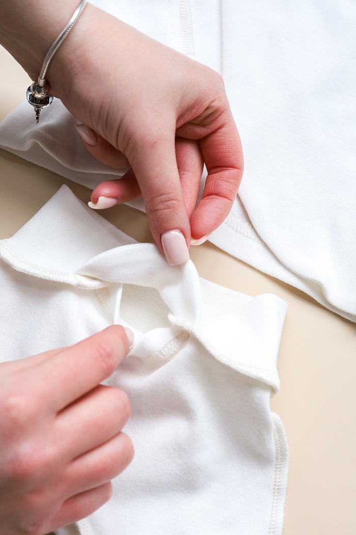 Пошит из 100% хлопка — гладкого интерлока. Натуральная ткань не вызывает аллергии, позволяет коже дышать и не парит.