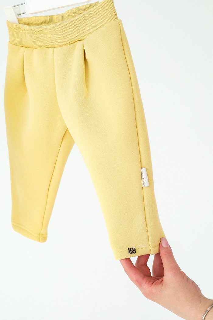 Штанишки имеют широкий пояс на резинке – легко одевать и удобно носить. Силуэт продуман: достаточно свободны, чтобы не сковывать движения, но одновременно с акцентом на трендовую посадку.