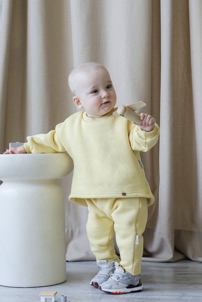 Свитшот имеет удлиненную спинку, которая защищает поясницу, когда малыш наклоняется или садится. Мягкая горловина не давит и не натирает, а манжеты фиксируют рукав, не мешая играть. Особый крой придает свитшоту приятный объем.