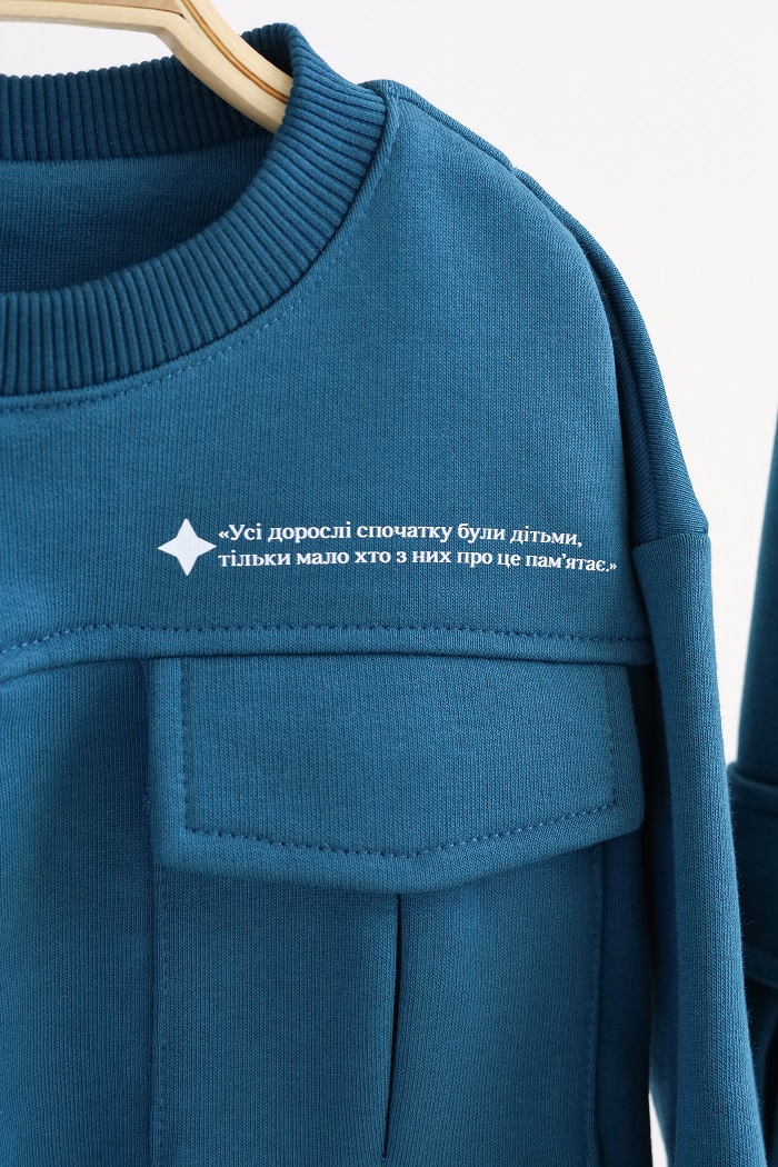 Выполнен из качественного трикотажа тринитки, но без дополнительного утепления, что делает его дышащим, натуральным и идеальным для походов в садик, например. Ведь в помещении, которое отапливается, детишкам не будет жарко.