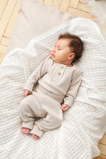 Пошит из хлопкового вафельного трикотажа. Натуральная ткань не вызывает аллергию, не парит и очень приятна на ощупь.
