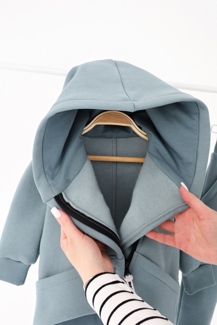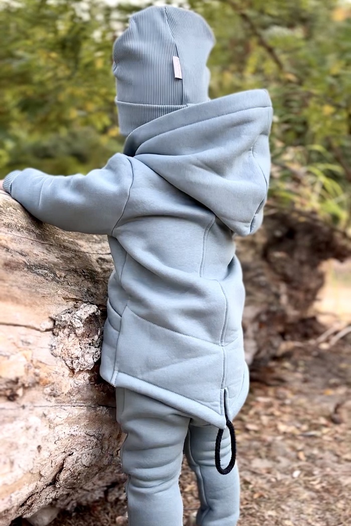 Капюшон двойной, на хлопковой подкладке. Штанишки с приспущенной матней смотрятся ну очень стильно.