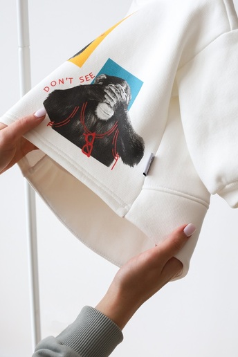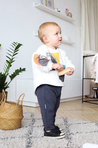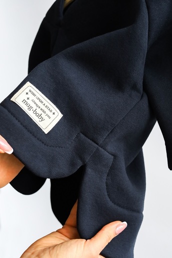 Пошит из тринитки с петлей. Натуральная ткань мягкая и приятная к телу, хорошо пропускает воздух, не парит и не вызывает раздражения. Не имеет начеса, поэтому отлично подходит, когда нужно будет раздеть малыша в игровой комнате, кафе или гостях.