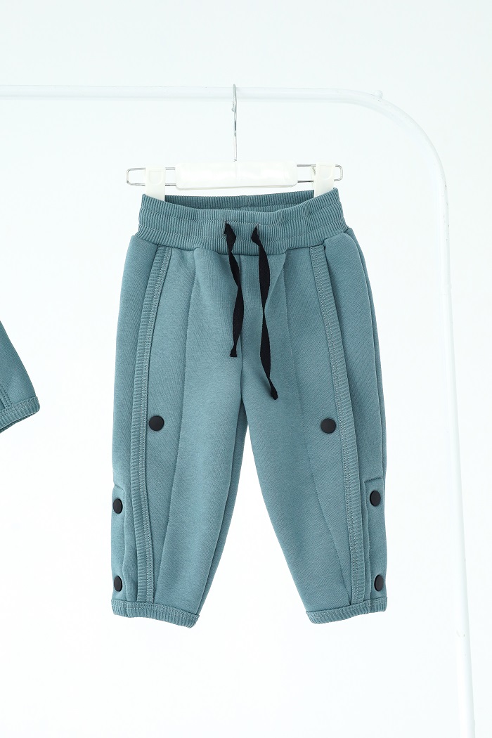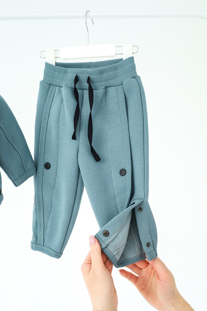 Этот костюм просто создан для уютных прогулок в прохладное время. Декоративные швы и кнопки по бокам – вот изюминка, придающая стиль. Кстати, кнопки расстегиваются.
