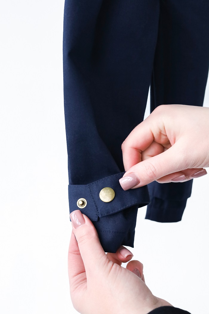 А изюминка в вшитом хлястике внизу штанины. Его нельзя снять, но именно он задает характер модели: придает структуру силуэта и создает стильный, немного «сказочный» вид, словно со страниц детских книг.