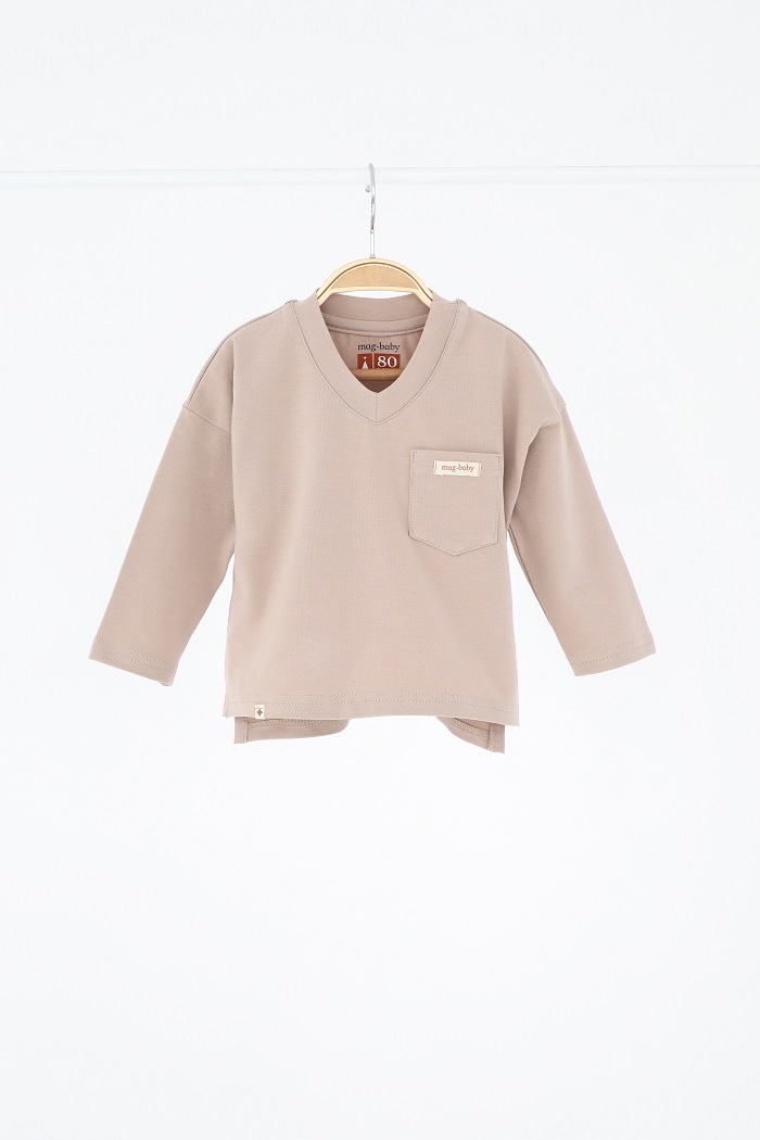 Горловина с V-образным вырезом. Карманчик с нашивкой. Удобно, стильно, минималистично.