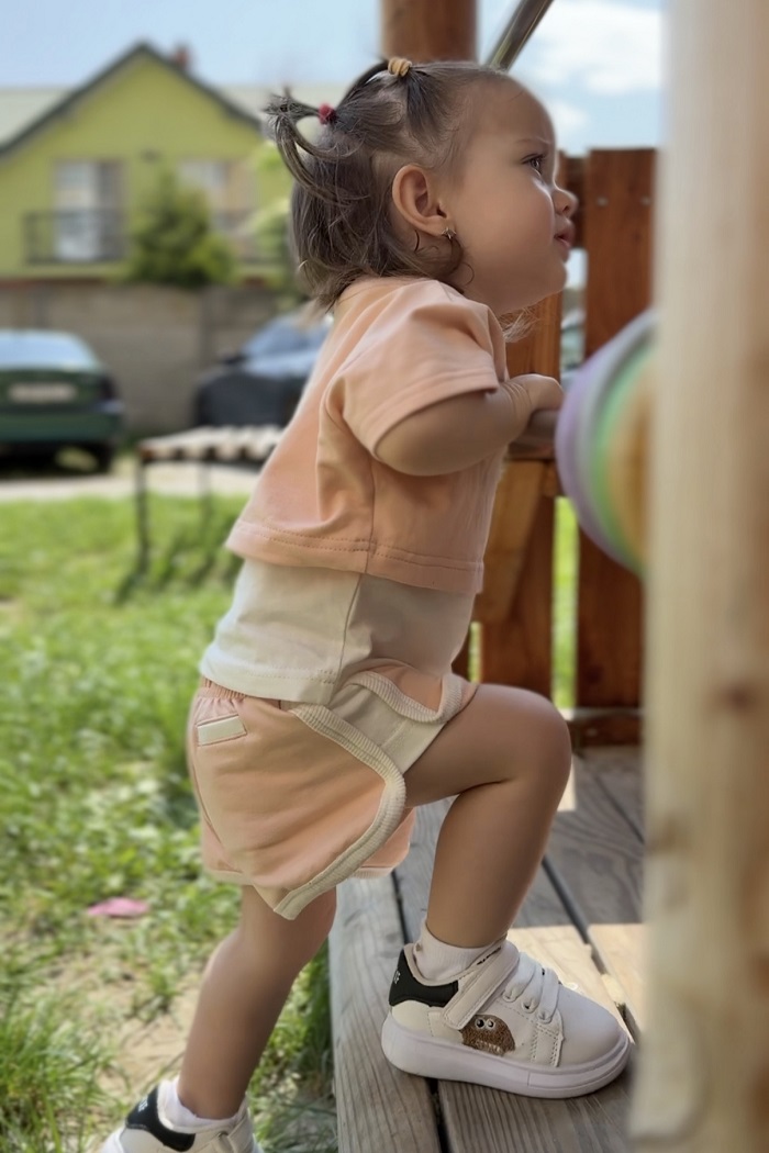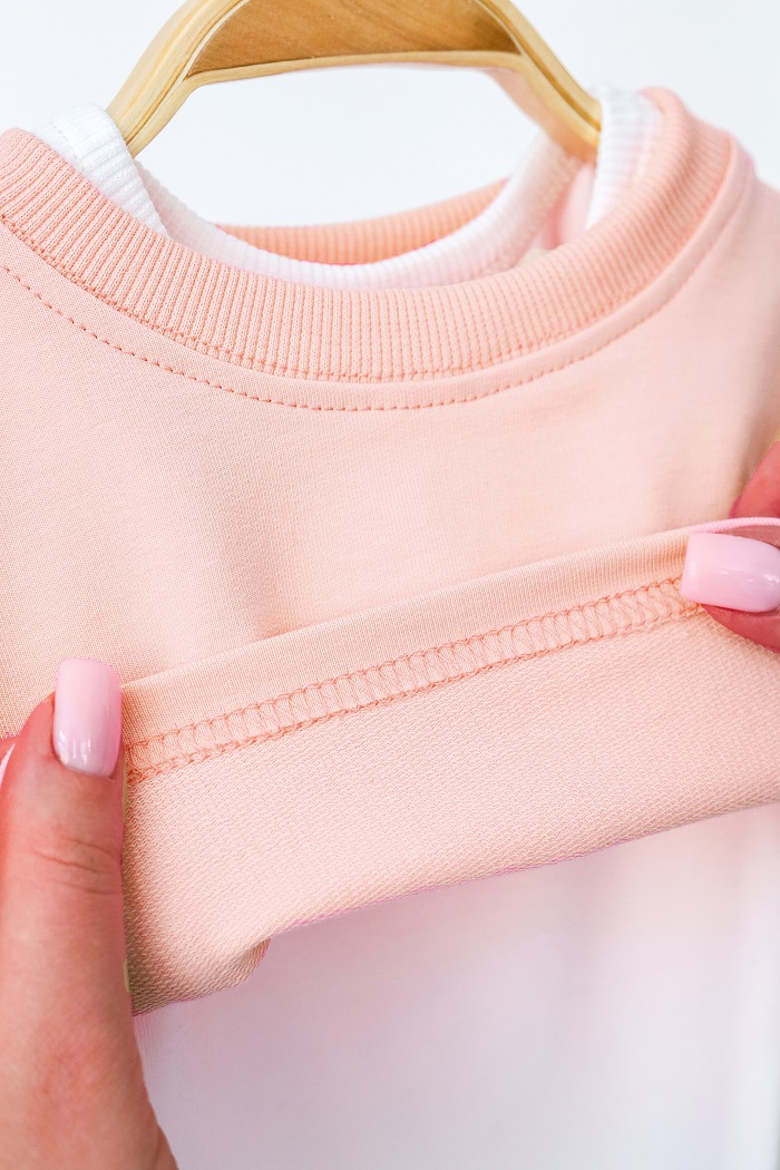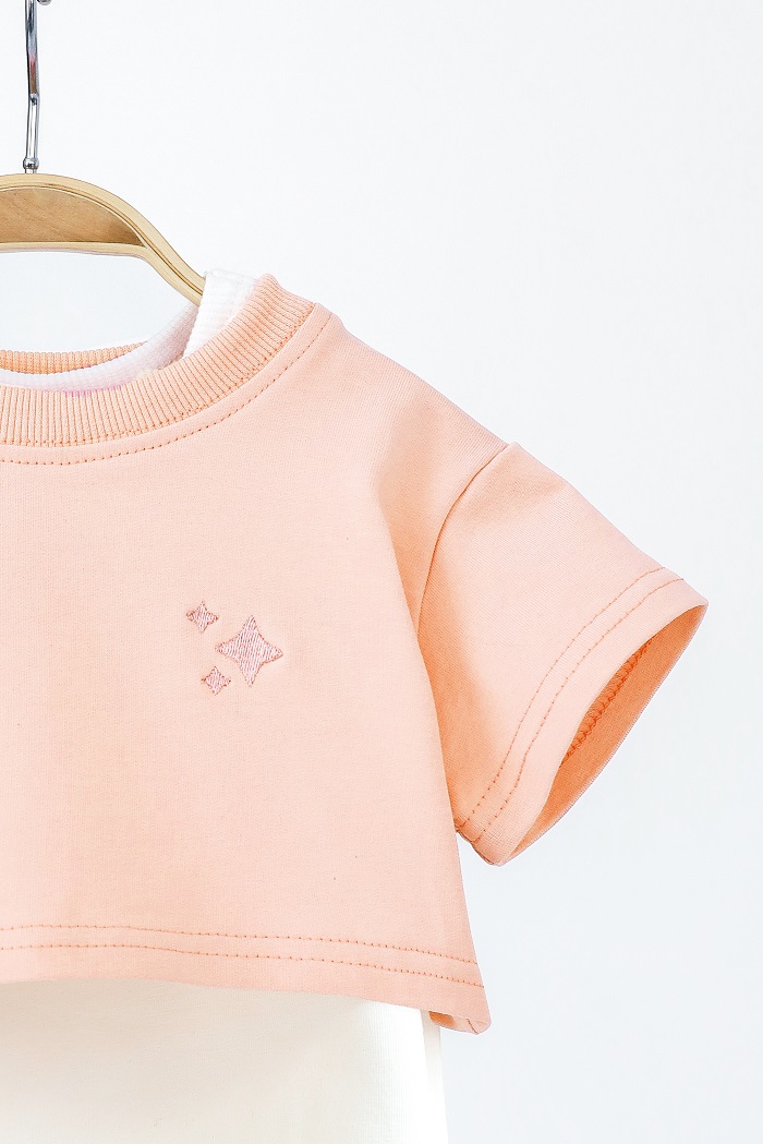 Пошита из кулирного трикотажа (95% хлопок, 5% эластан). Натуральная ткань хорошо пропускает воздух, не создает парникового эффекта и не вызывает аллергию. А благодаря эластану вещи служат дольше и хорошо держат форму даже после многочисленной стирки.