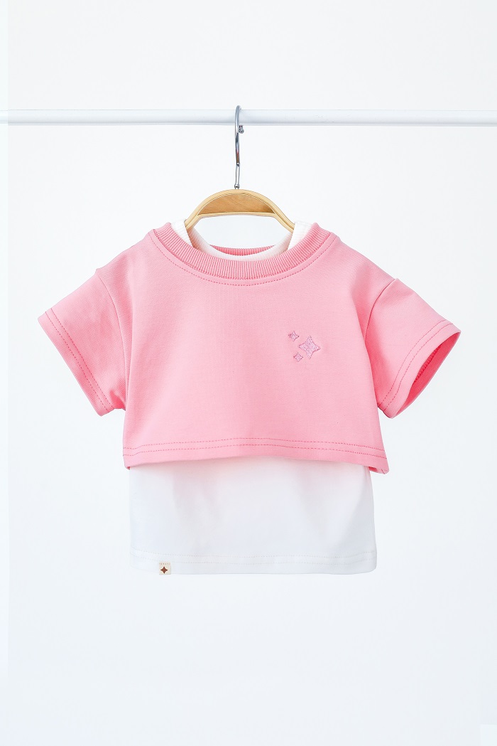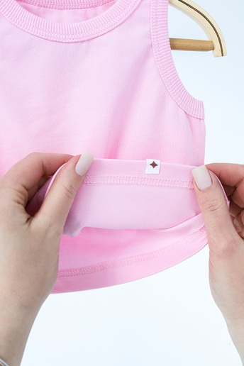Пошита из кулирного трикотажа (95% хлопок, 5% эластан). Натуральная ткань хорошо пропускает воздух, не создает парникового эффекта и не вызывает аллергию. А благодаря эластану вещи служат дольше и хорошо держат форму даже после многочисленной стирки.