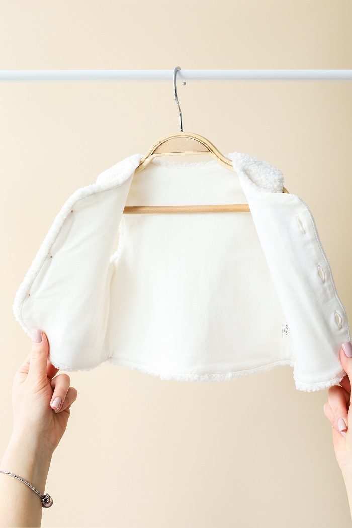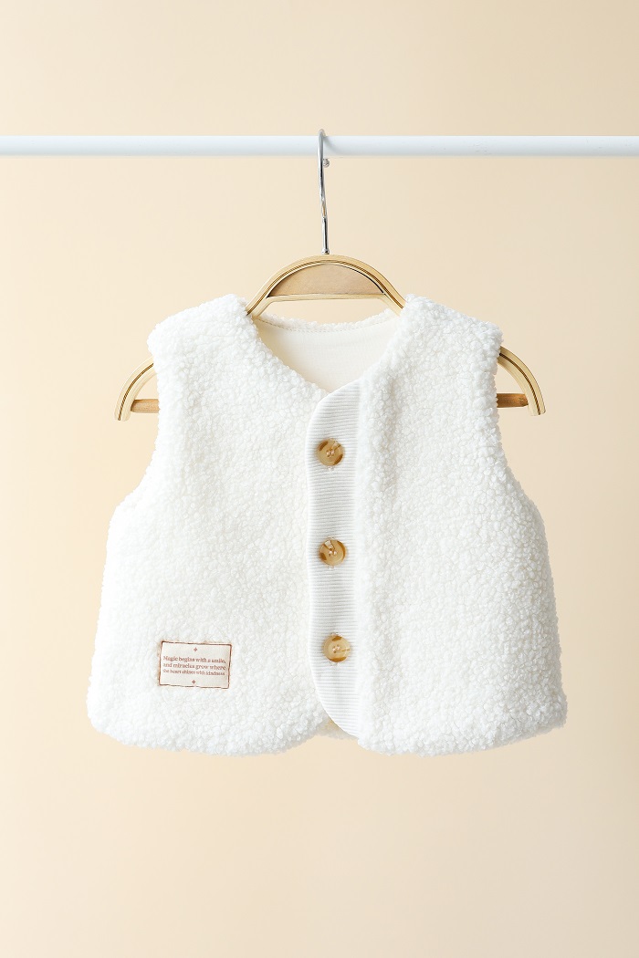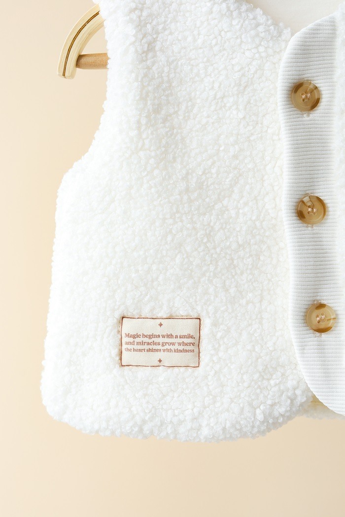 Пошитаиз мягкого искусственного меха «тедди», на хлопковой подкладке, без утеплителя. Застёгивается на пуговицы.
