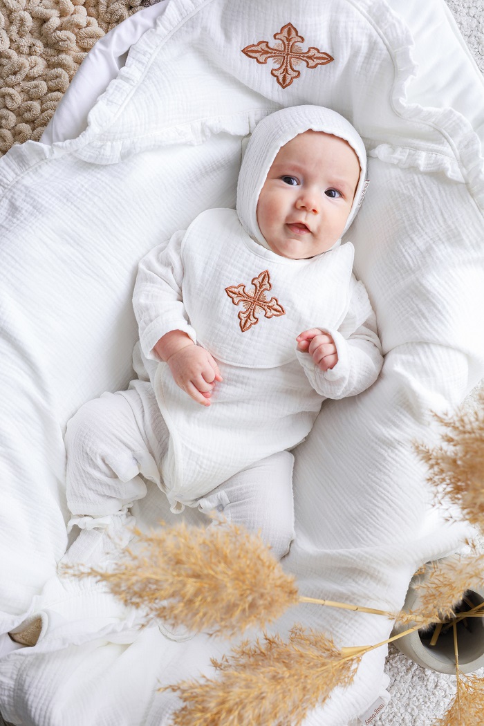 Легкая муслиновая крыжма для самого светлого события в жизни малышей - таинство крещения.