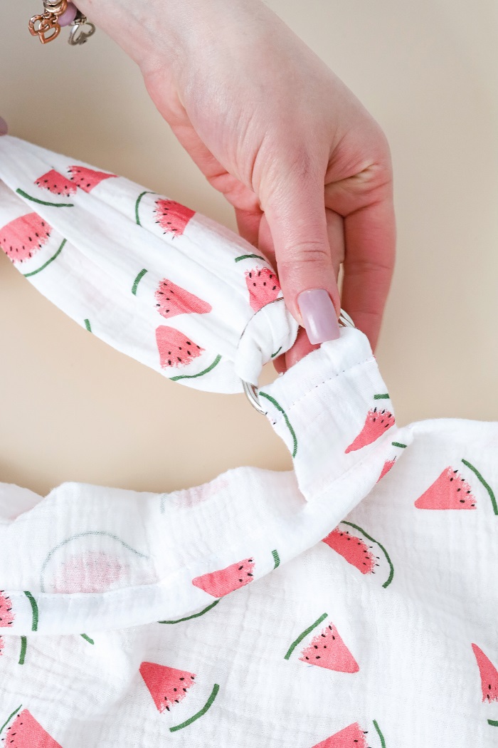 • Перекидная бретель, которая дает возможность регулировать высоту и подстраиваться под удобство мамы и ребенка. Крепится бретель с помощью двух металлических бляшек.