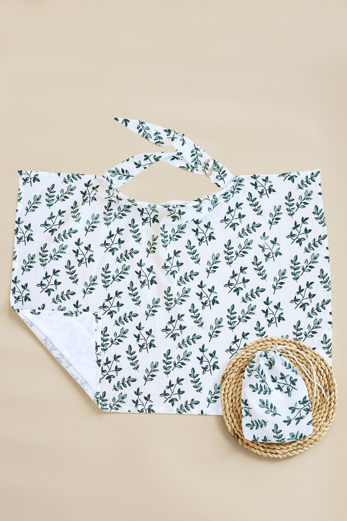 Накидка для кормления имеет перекидную бретельку, которая даёт возможность регулировать высоту и подстраиваться под удобство матери и ребёнка. Крепится бретель с помощью двух металлических бляшек.