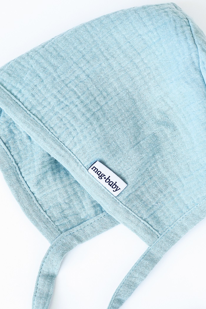 Пошит из тоненького муслина (100% хлопок). Мягкий и нежный для чувствительной кожи малыша. Муслин гипоаллергенен, не парит и хорошо пропускает воздух. Это важно, ведь головка новорожденных часто потеет, а натуральные ткани уменьшают риск возникновения раздражений и сыпи.