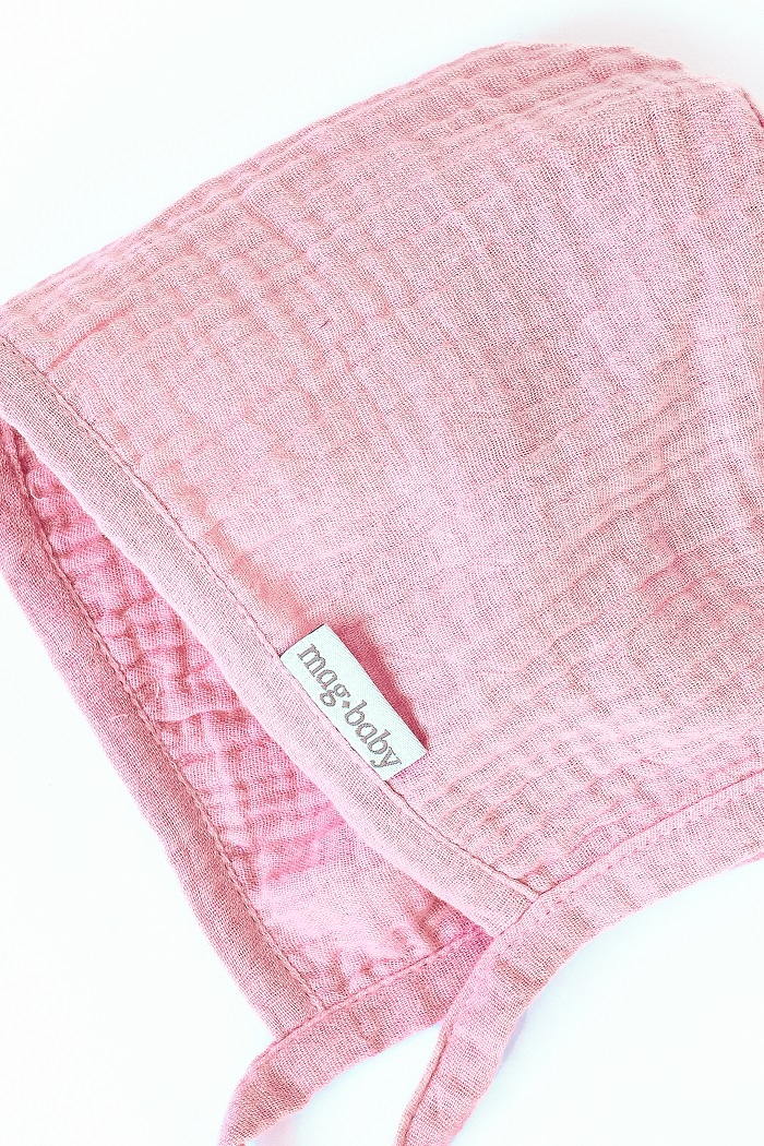 Пошит из тоненького муслина (100% хлопок). Мягкий и нежный для чувствительной кожи малыша. Муслин гипоаллергенен, не парит и хорошо пропускает воздух. Это важно, ведь головка новорожденных часто потеет, а натуральные ткани уменьшают риск возникновения раздражений и сыпи.