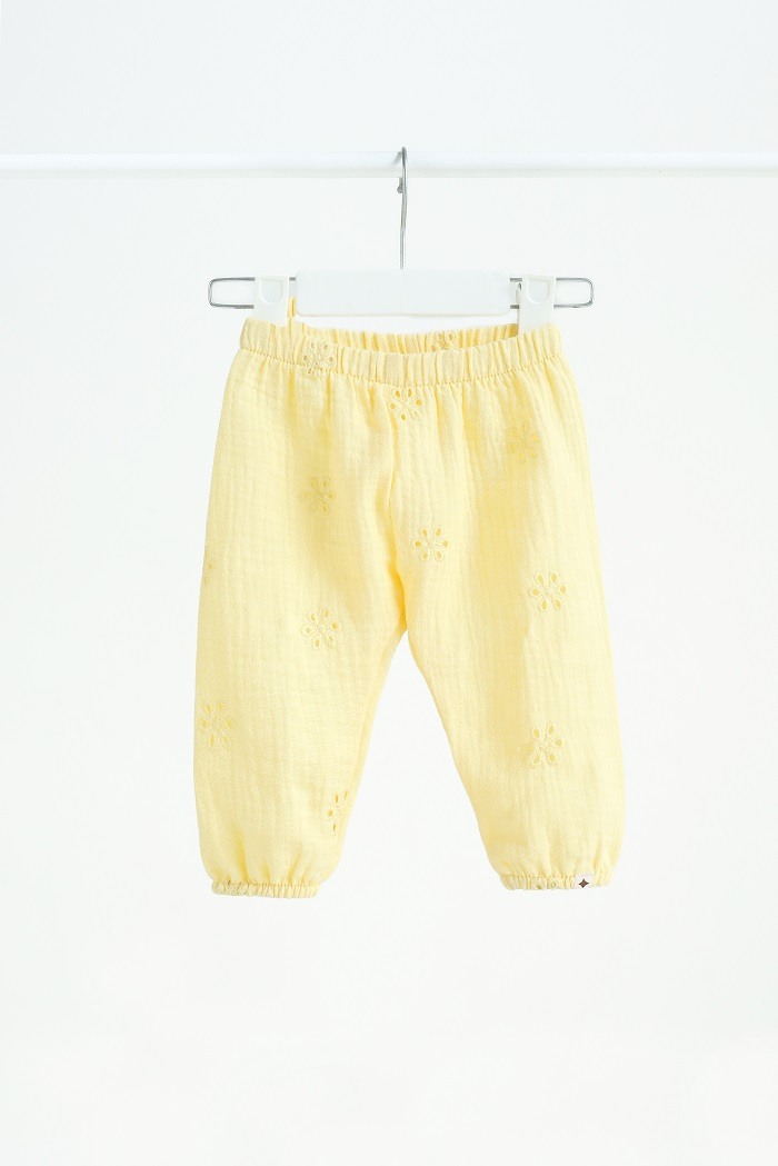 Муслиновые штанишки – это о комфорте с первых маленьких шагов к первым большим открытиям. Идеально подходят для тёплых и жарких дней: прогулок, игр или просто уютных моментов дома.