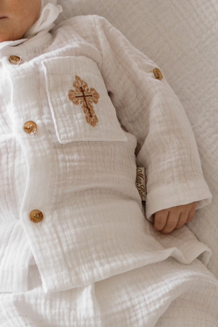 Замовила такий костюмчик для свого сина і тільки-но відкрила посилочку на пошті і зразу закохалась у цю ніжну ніжність: тканина мега комфортна, дуже святково виглядає,саме те,що треба для такої важливої події як хрещення