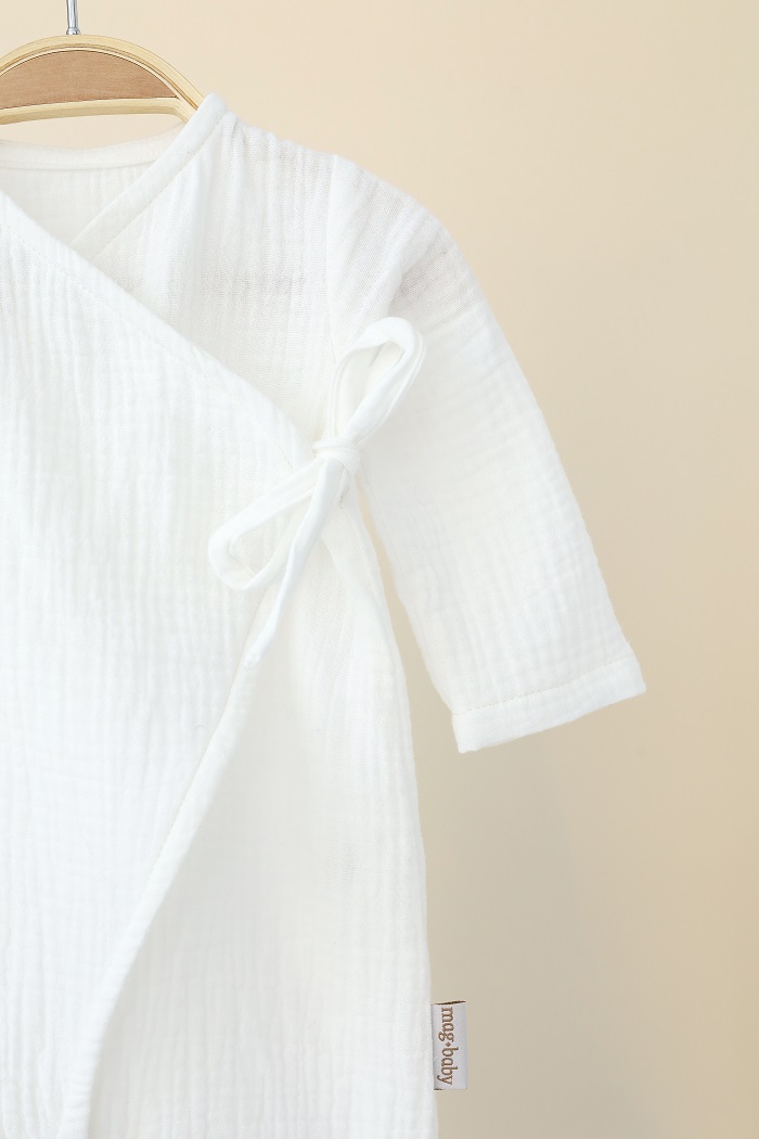 Ромпер на запах легко одевается и снимается, а удобные завязки-бантики добавляют милоты.