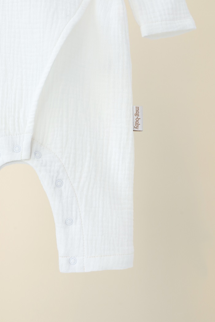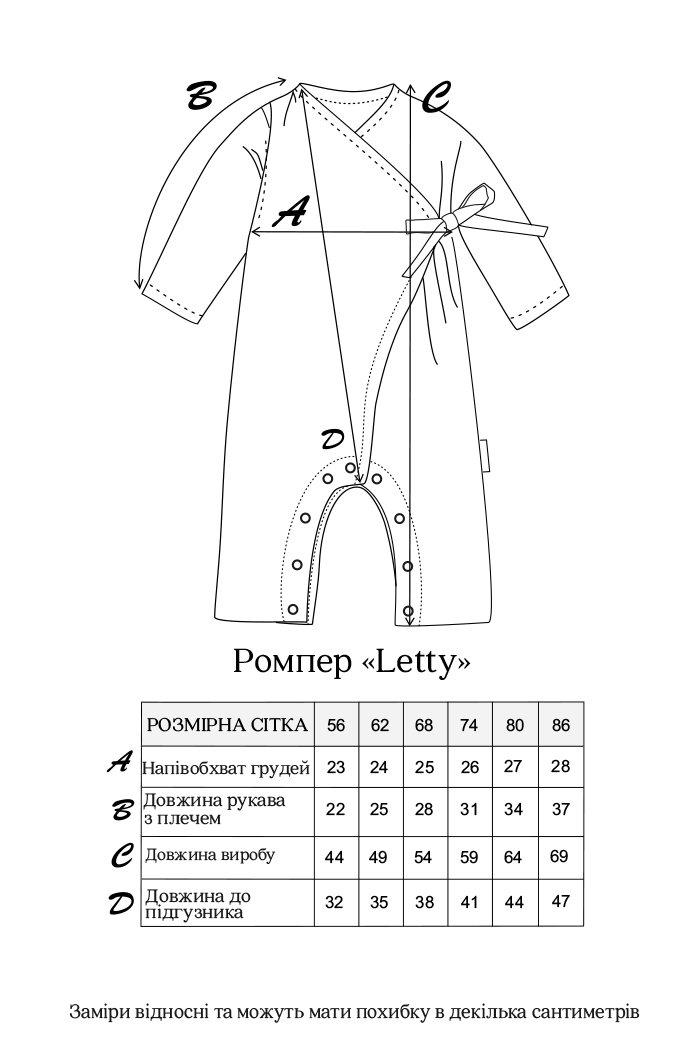 Ромпер пошит из 100% натурального хлопка. Эта ткань гипоаллергенна, позволяет коже «дышать», хорошо впитывает влагу и быстро сохнет. Следовательно, предотвращает появление раздражений от перегрева.