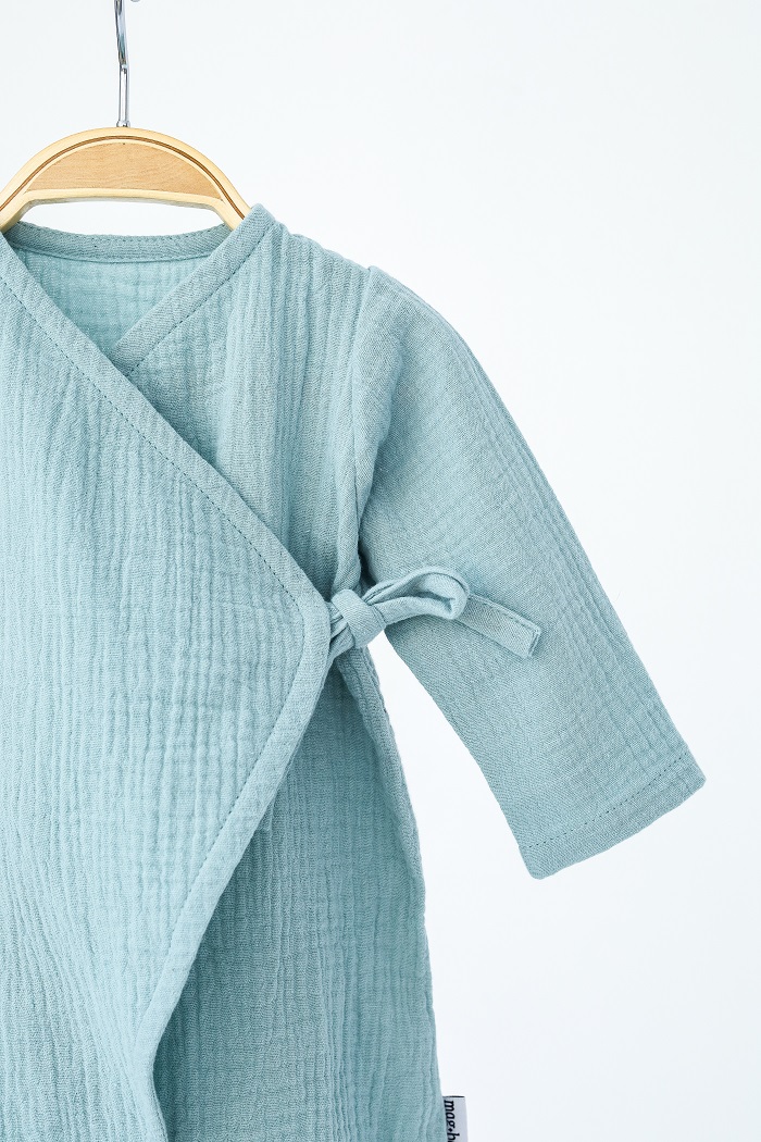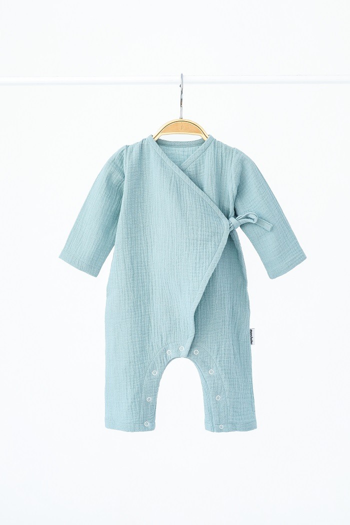 Ромпер на запах легко одевается и снимается, а удобные завязки-бантики добавляют милоты.