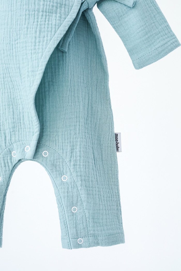 Ромпер пошит из 100% натурального хлопка. Эта ткань гипоаллергенна, позволяет коже «дышать», хорошо впитывает влагу и быстро сохнет. Следовательно, предотвращает появление раздражений от перегрева.