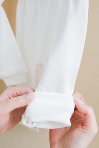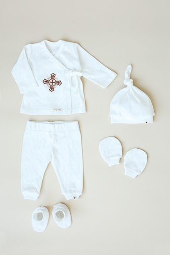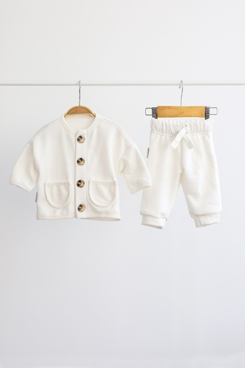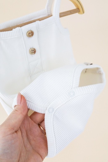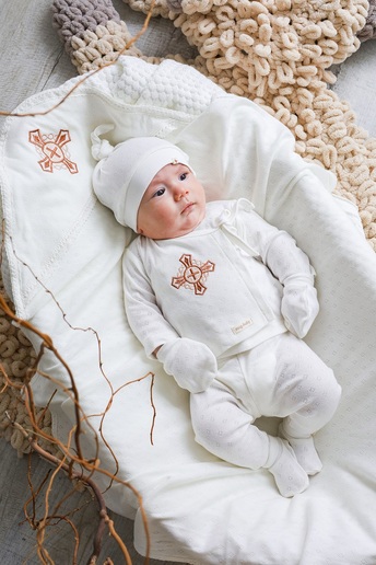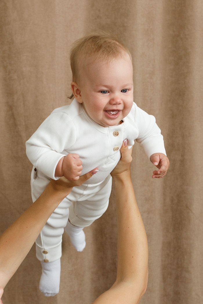 Этот костюм и правда практичен и на все случаи жизни: на выписку, крестины, как поддев, на прогулку или домашний вариант. Мягкая хлопковая ткань не сковывает движения ребенка, а пуговки под натуральное дерево делают комплект стильным и экологичным. Вся красота, как мне кажется, в его минимализме. Комплект состоит из боди с длинным рукавом и штаниками с манжетами, которые имеют отделку в виде пуговиц. Горловина у бодика так же расстёгивается с помощью пуговиц для удобства одевания.
