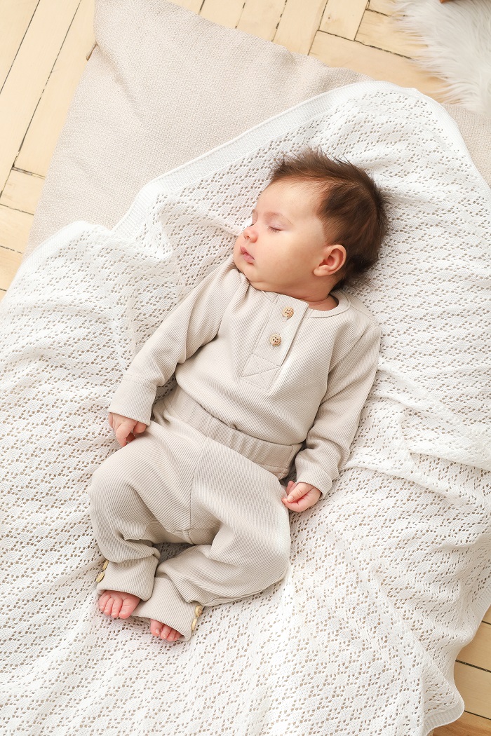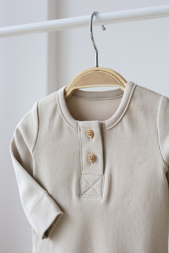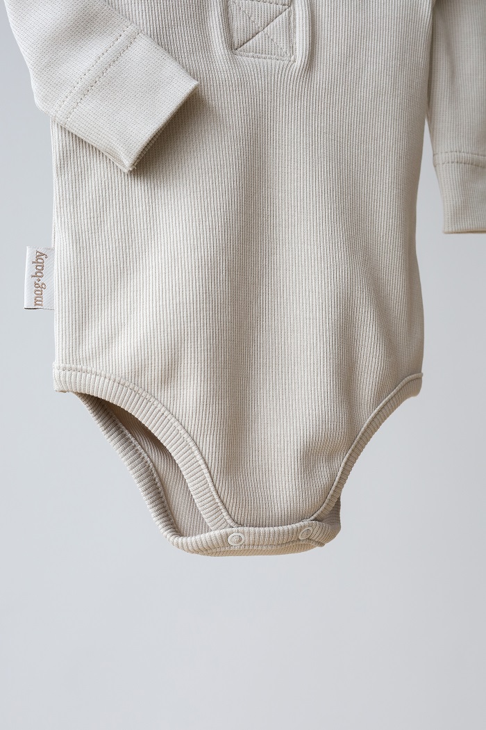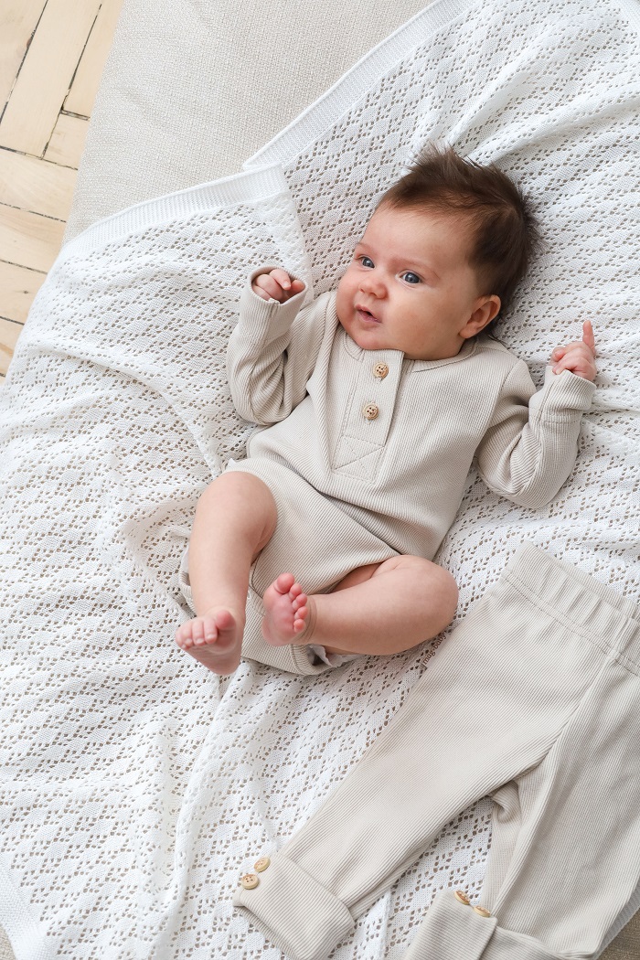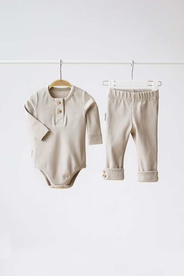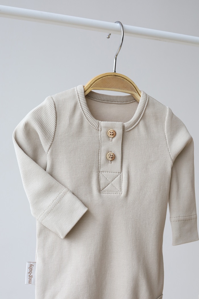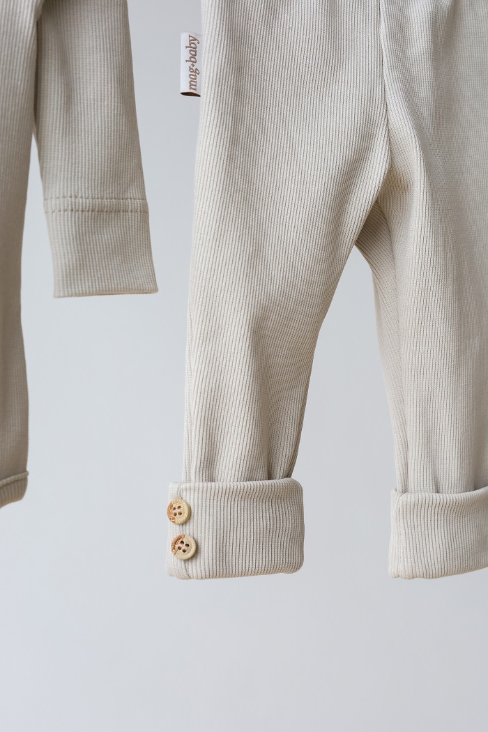 Этот костюм и правда практичен и на все случаи жизни: на выписку, крестины, как поддев, на прогулку или домашний вариант. Мягкая хлопковая ткань не сковывает движения ребенка, а пуговки под натуральное дерево делают комплект стильным и экологичным. Вся красота, как мне кажется, в его минимализме. Комплект состоит из боди с длинным рукавом и штаниками с манжетами, которые имеют отделку в виде пуговиц. Горловина у бодика так же расстёгивается с помощью пуговиц для удобства одевания.