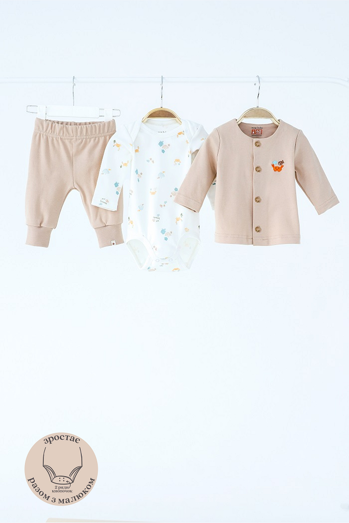 Этот набор создан для первых исследований мира – дома, на прогулке или в гостях у бабушки. Мягкий к телу, удобен для движения и стильный настолько, что хочется фоткать каждый выход из дома.
