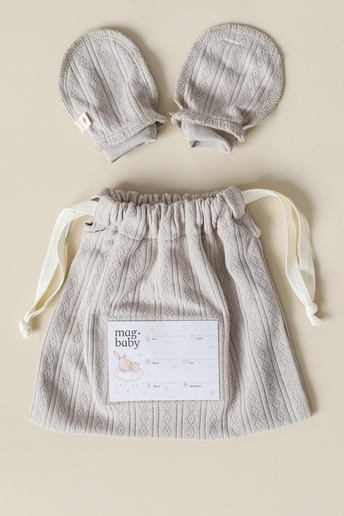 А еще в набор входит: царапки, пинетки и слюнявчик, который кстати, поможет реже менять одежду малышу.