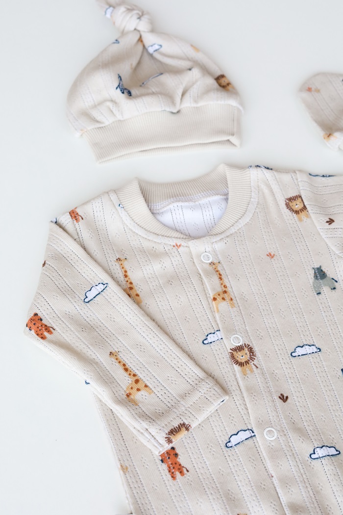Каждое изделие изготовлено из воздушного трикотажа в перфорацию. Маме точно можно не переживать о мимимишности первых семейных фото, этот набор для истинных эстетов.