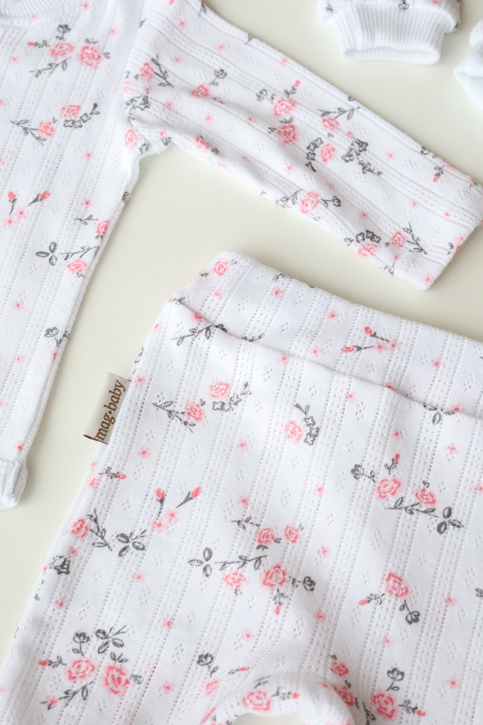 Каждое изделие изготовлено из воздушного трикотажа в перфорацию. Маме точно можно не переживать о мимимишности первых семейных фото, этот набор для истинных эстетов.