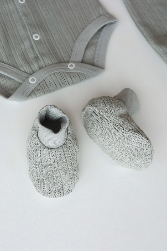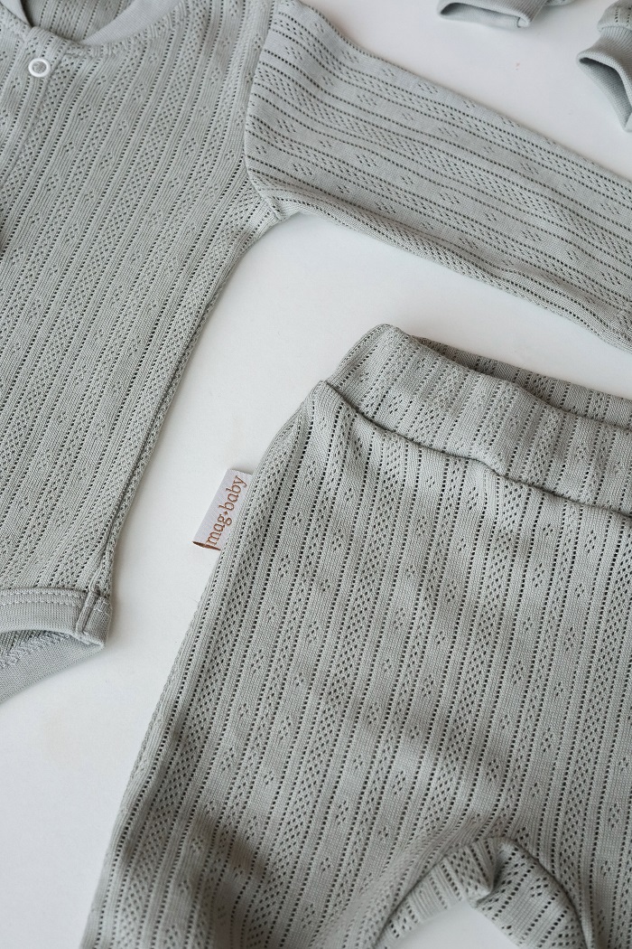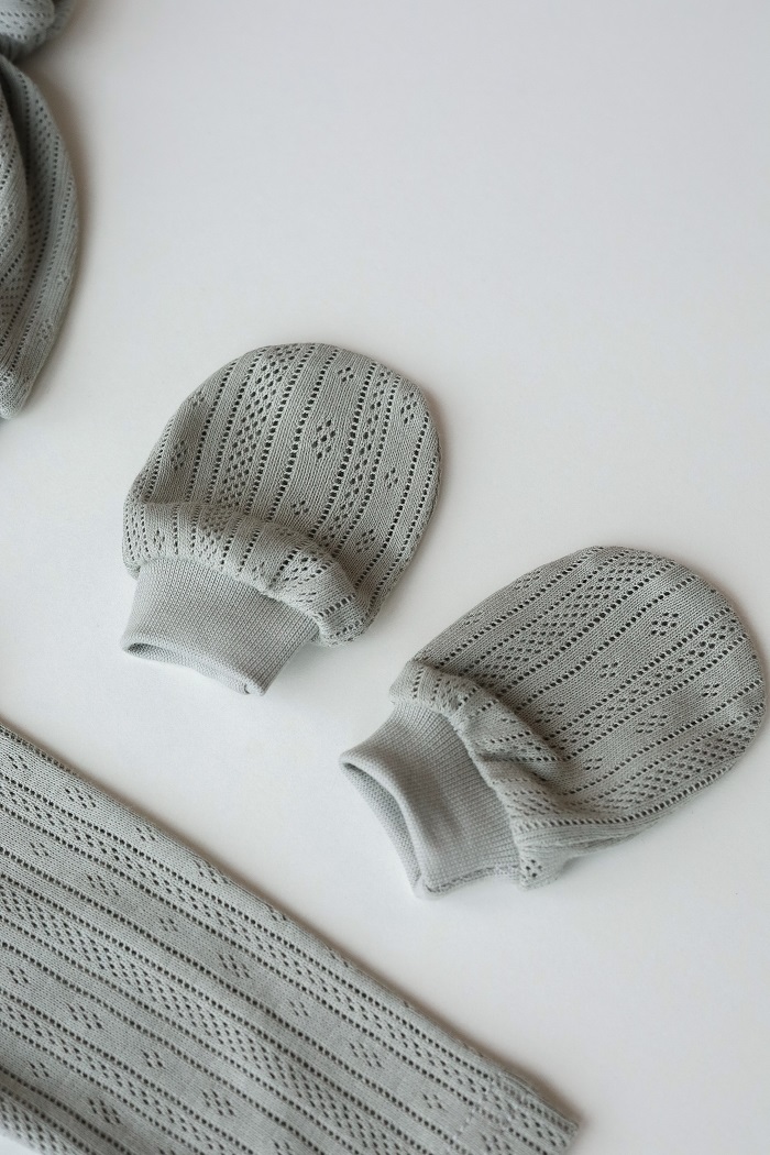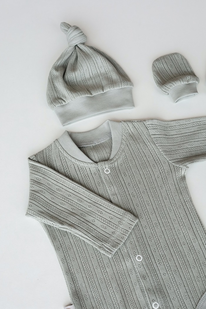 Каждое изделие изготовлено из воздушного трикотажа в перфорацию. Маме точно можно не переживать о мимимишности первых семейных фото, этот набор для истинных эстетов.