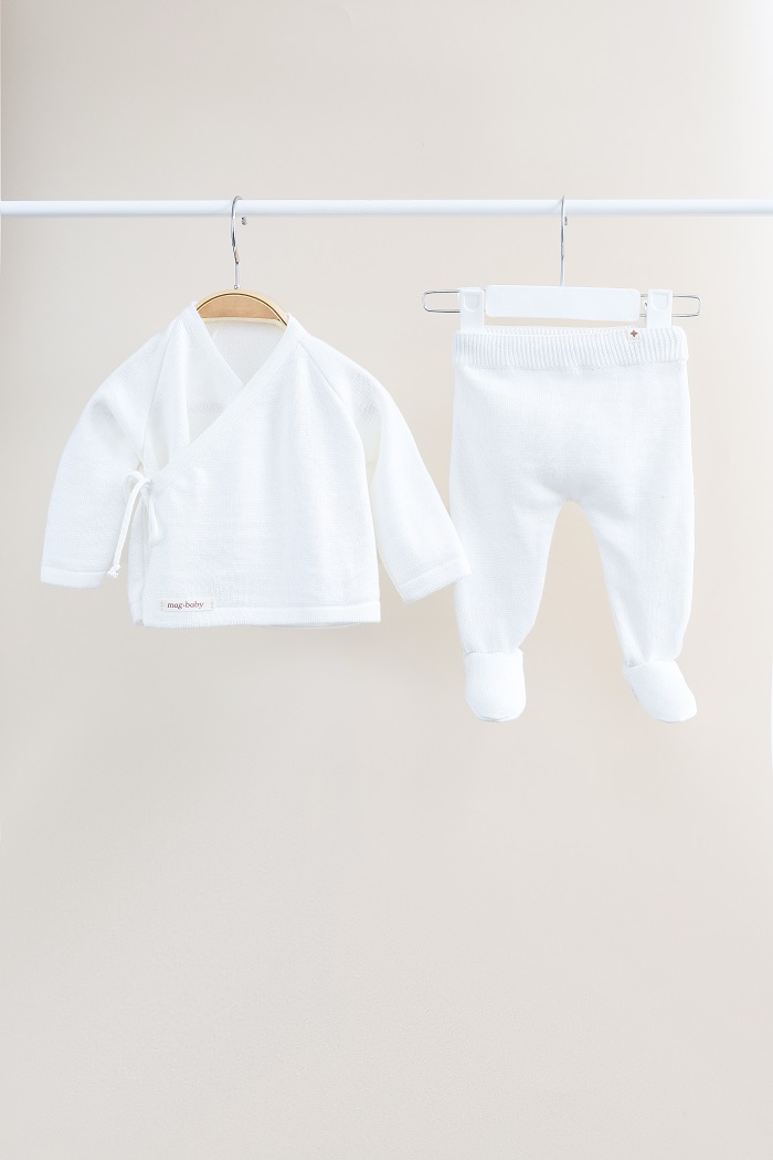 Стильный базовый набор, который оценит каждая мама. Содержит распашонку и ползуны, которые не только комфортны, но и очень красивые.