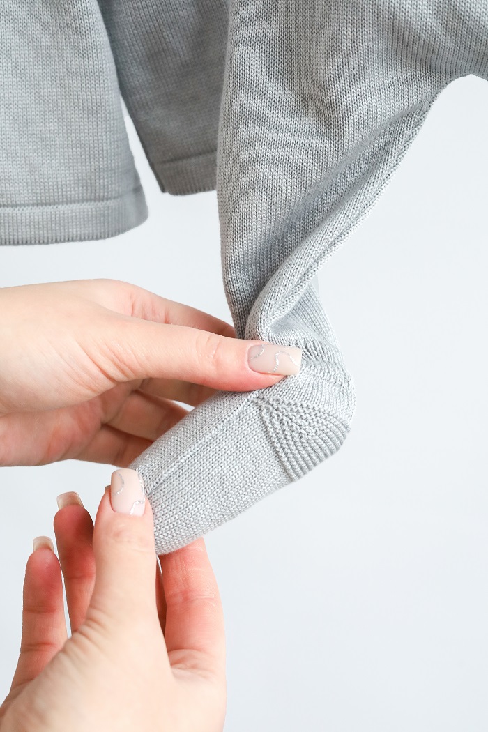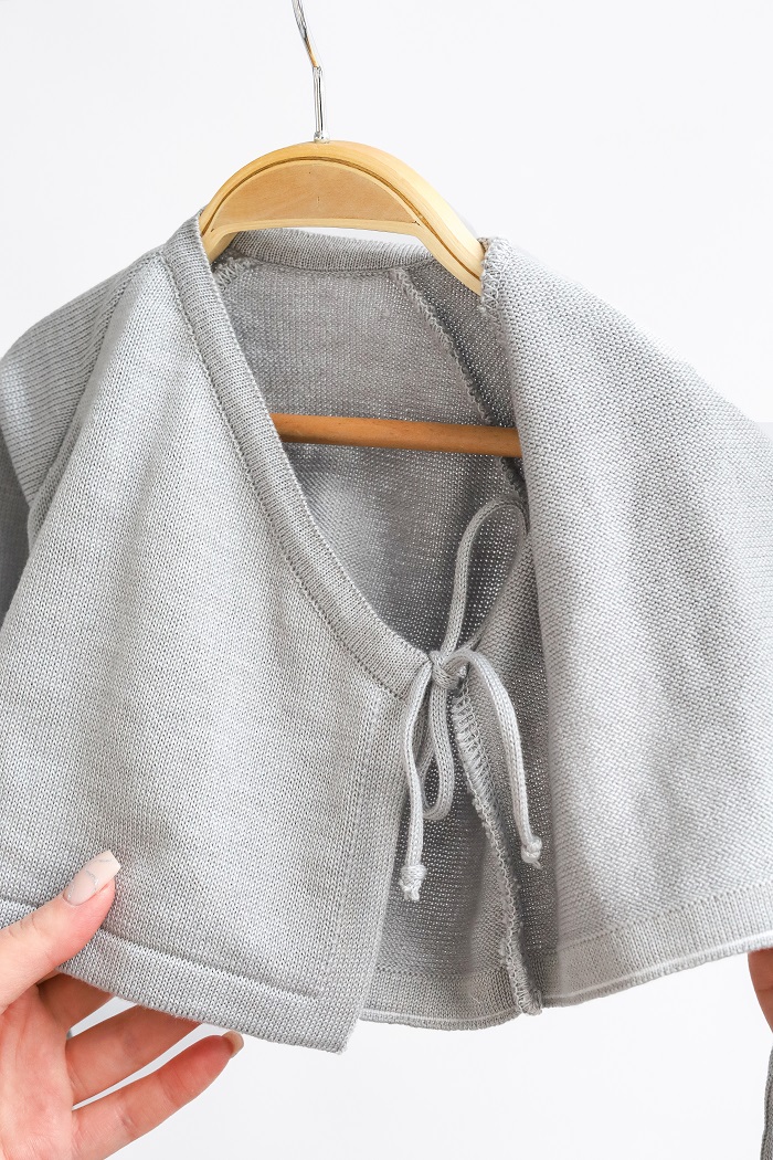 Набор вывязан из нитки, которая очень приятна тактильно. В составе 50% хлопка и 50% акрила. Хлопок хорошо пропускает воздух и позволяет коже дышать. Акрил придает нити прочности и эластичности. Поэтому одежда сохраняет свою форму даже после многочисленной стирки.