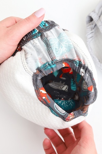 Весь секрет именно внутри. Первый слой – это хлопковая махра. Именно этот слой контактирует с телом ребенка. Второй слой – впитывающий. Третий слой – махра на мембране. Именно мембрана совсем не пропускает влагу. Четвертый слой – это хлопковый трикотаж снаружи.