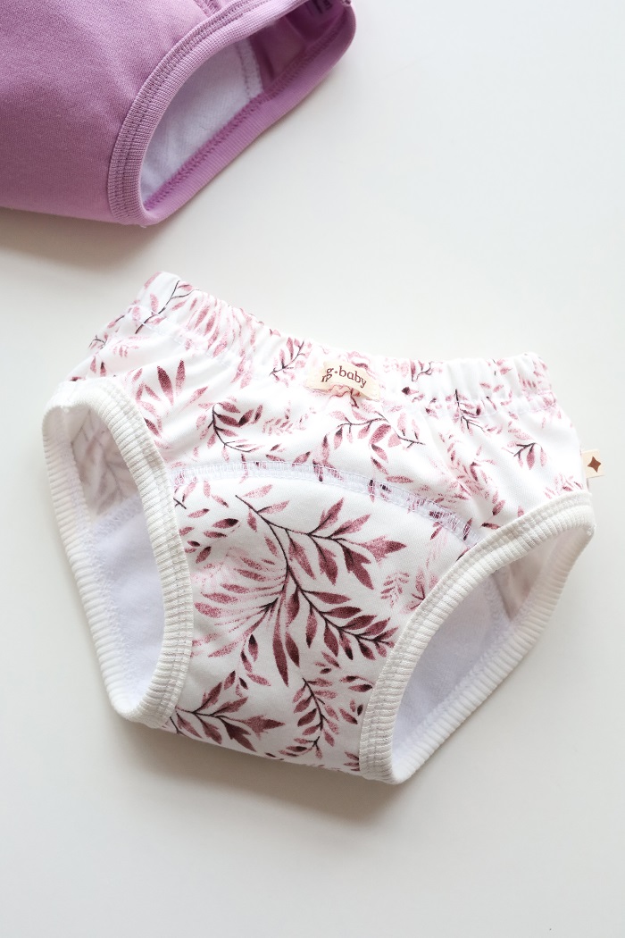 Набор тренировочных трусиков, Листики с темно-розовыми