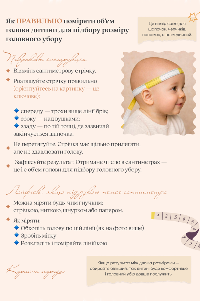 Чтобы правильно выбрать размер панамки, необходимо замерить объем головки в сантиметрах. Как это правильно сделать можно найти на картинке в галерее фото к товару.