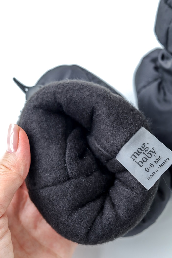 Пошито из плащевки, а внутри из нежного полар-флиса, который «дышит» и хорошо сохраняет тепло. Утеплены силиконизированным синтепоном, поэтому не дают проникнуть ветру и холоду внутрь.