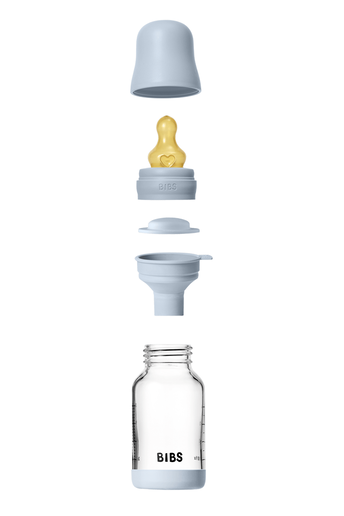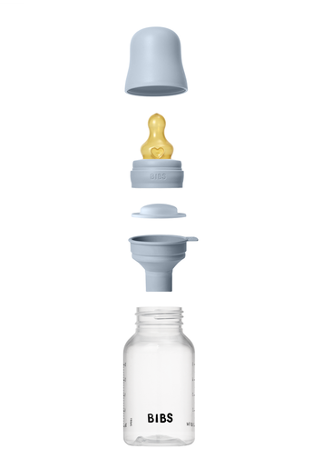 Пляшечка BIBS об’ємом 270 мл із соскою з каучукового латексу, з антиколіковою функцією.