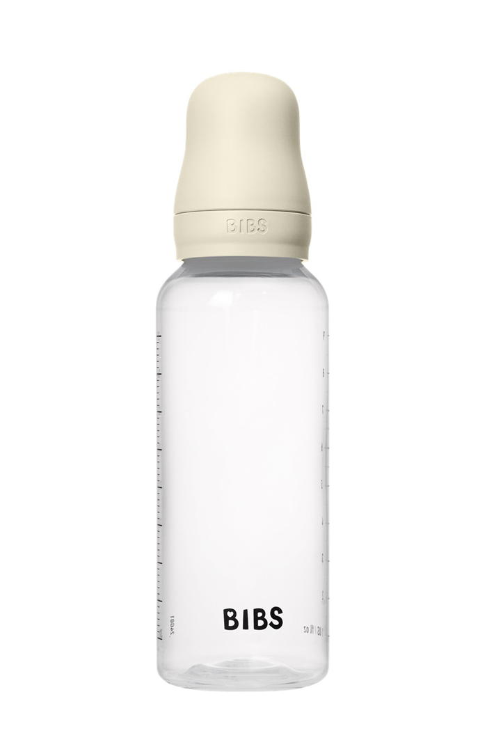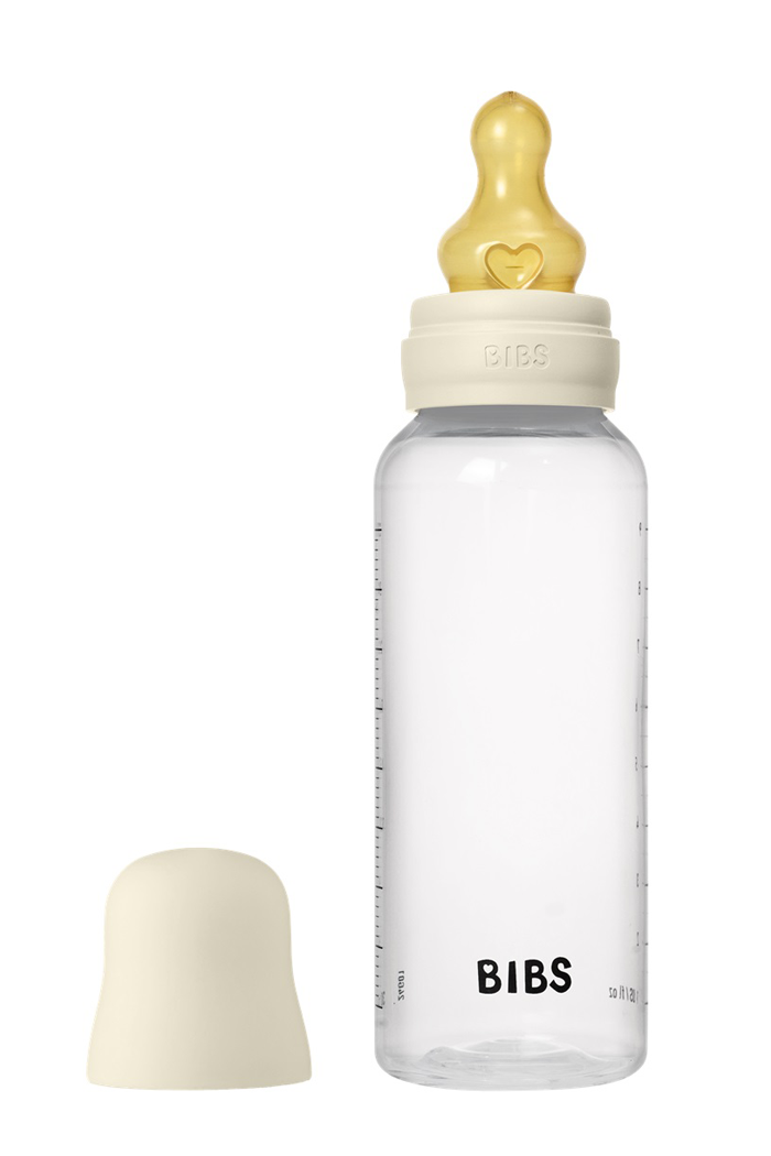 Пляшечка BIBS об’ємом 270 мл із соскою з каучукового латексу, з антиколіковою функцією.