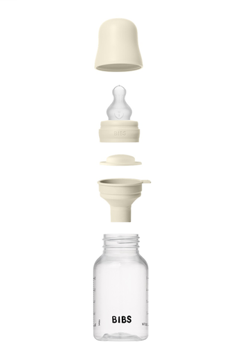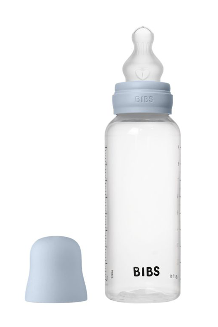 Пляшечка BIBS об’ємом 270 мл із соскою із силікону, з антиколіковою функцією.