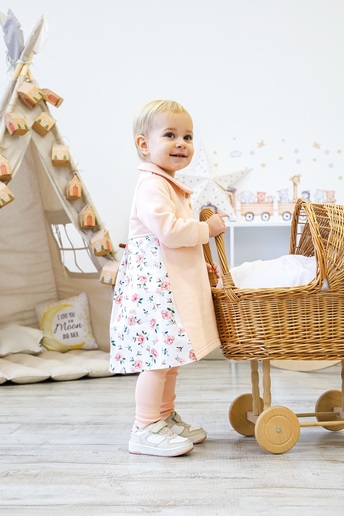 Низ платья из муслина – 100% натурального хлопка с нежным принтом. А благодаря природной текстуре вам не придется постоянно гладить платье. Ваш малышка будет непревзойденной!